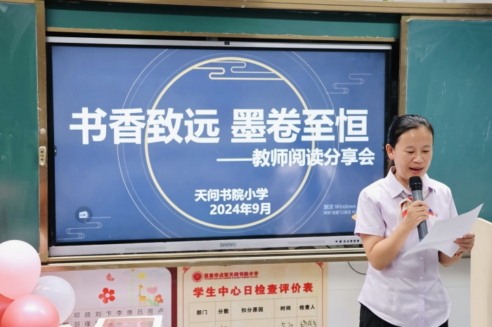 阅读是教师成长的必由之路。为了营造良好的阅读氛围,分享阅读书籍交流阅读想法,提升教育智慧,天问书小全体教师9月10日开展“书香致远墨卷至恒”阅读分享会。