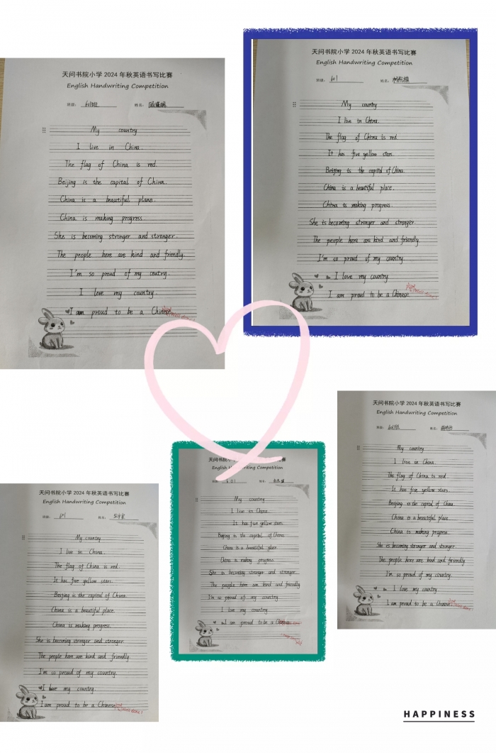 一笔一划,疏密有致;一词一句,规范得体。笔直的四线三格上,绽放着学生们用笔尖行走的魅力于精彩。书写整洁美观,赏心悦目。