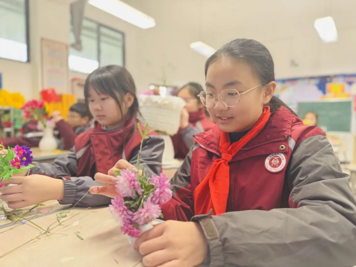 种植社团,同学们从修剪枝叶到设计造型,领略繁花的烂漫与艺术的优雅;烹饪社团,他们将新鲜食材化作美味佳肴,感受美食的魅力,体验生活的温度。编织社团,他们匠心独运将线材编织成趣,点亮创意火花,感受生活的灵感与美好;小鲁班社团,学生们在老师的引领下,把木材变成实用的小物件,于一榫一卯间培育耐心和专注。
