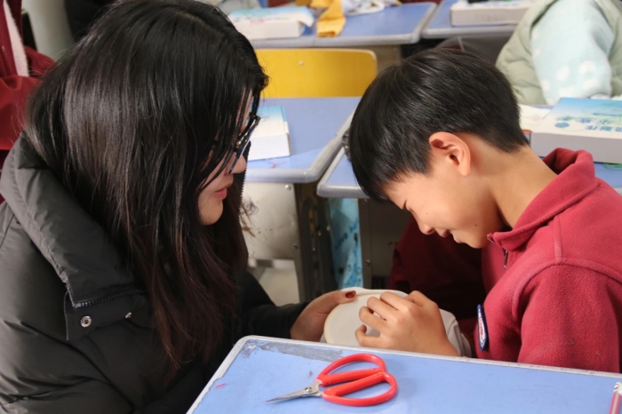 五年级编织、剪纸、扎染素养展示中,孩子们全神贯注地操作着手中的工具,手指如灵动的蝴蝶般在其间穿梭飞舞,每一个步骤都充分展现出孩子们在劳动实践中磨砺出的卓越动手能力。