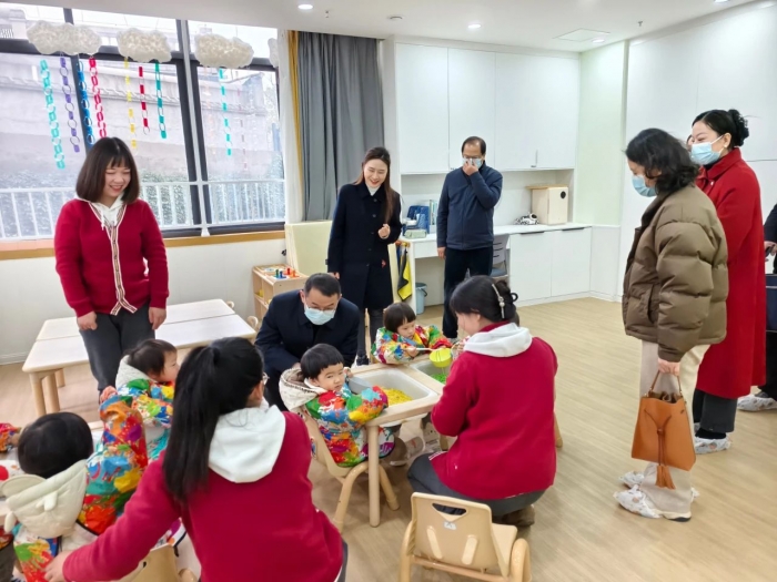 3月5日上午,湖北省卫健委家庭发展处处长龚海涛带领省专家组及荆门、荆州、恩施卫健局家庭发展科牵头负责人莅临东山天问托育早教园,对园区的婴幼儿照护服务工作进行了全面细致的现场调研。宜昌市卫健委副主任苏明丽,市卫健委家庭发展科科长王代权,区卫健局分管局长张春芳陪同调研。