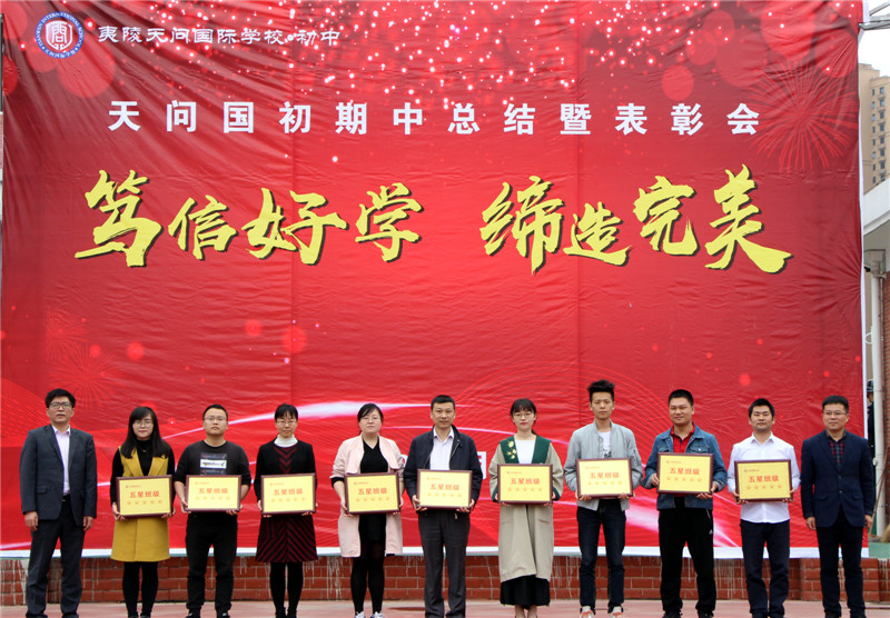 5月6日,天问国际初中举行了“笃信好学 缔造完美”2019年春季学期期中总结暨表彰大会,分别对天问之星、进步之星、学习之星、文明寝室和五星班级进行了表彰。