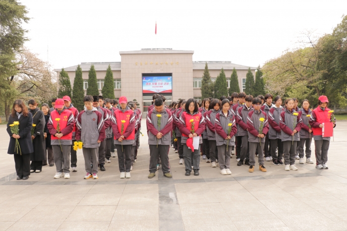 在庄严肃穆的氛围中,师生齐声奏唱国歌,随后默哀一分钟,以表达对革命先烈的深切缅怀与崇高敬意。在聆听了一段段感人至深的烈士事迹后,大家怀着崇敬之情瞻仰纪念碑,并献上鲜花以寄托哀思。