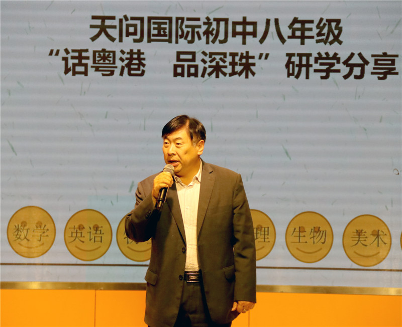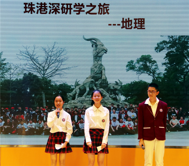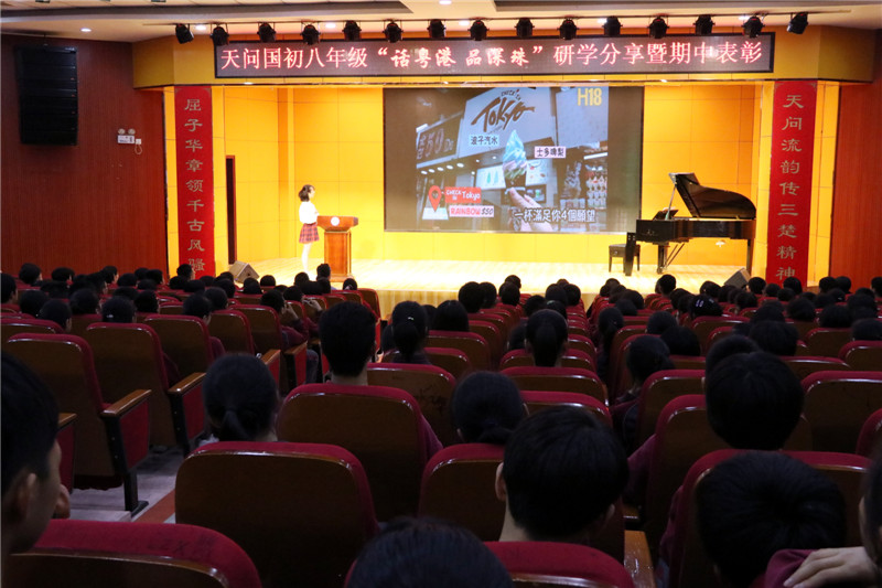 5月7日,天问国际初中八年级全体师生齐聚橘颂厅,对为期一周的港粤研学活动进行了总结与分享。同学们以小组为单位,分别代表文史、数学、英语、物理、思品、地理、生物、美术、音乐等学科,围绕研学手册中的相关课题,结合研学感悟将自己的所见、所思、所想以及研究成果,以多种形式展现给大家,让同学们重温了一次难忘的港粤之行。