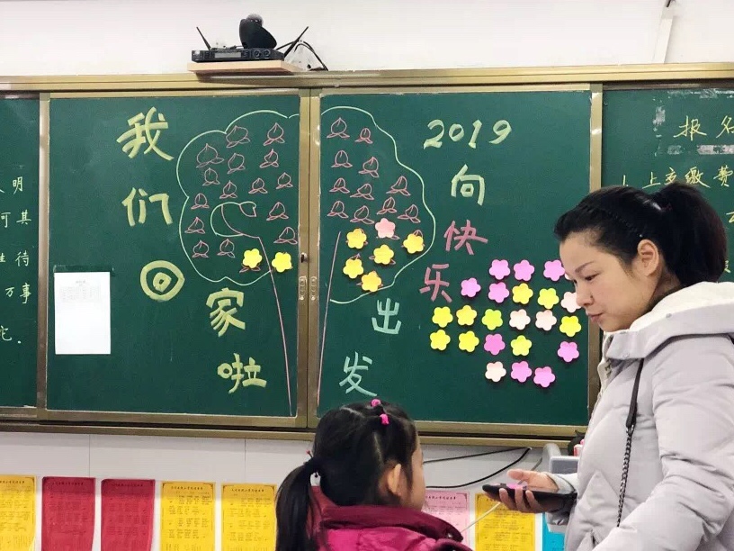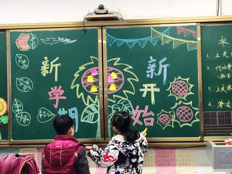 走进教室,各班别出心裁的报到形式让同学们激动不已。一年级围绕班名设计图腾,101的桃树和102的向日葵上贴满了同学们的新学期目标;五年级的同学们都“集齐”了班主任老师赠送的一句祝福诗词;六年级的同学在精美的书签上写上父母的生日,感念亲情,以“孝”道作为开学第一课。