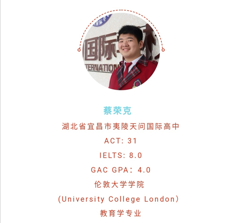 学者如牛毛,成者如麟角!2019年5月7日,立夏初至,ACT-GAC的学子在期待中迎来了各种收获的喜悦!经全国各中心推荐、ACT中国办公室层层选拔,天问国际高中的蔡荣克同学从众多ACT学员中脱颖而出,成为全国十五位佼佼者之一,在榜上赫赫有名!