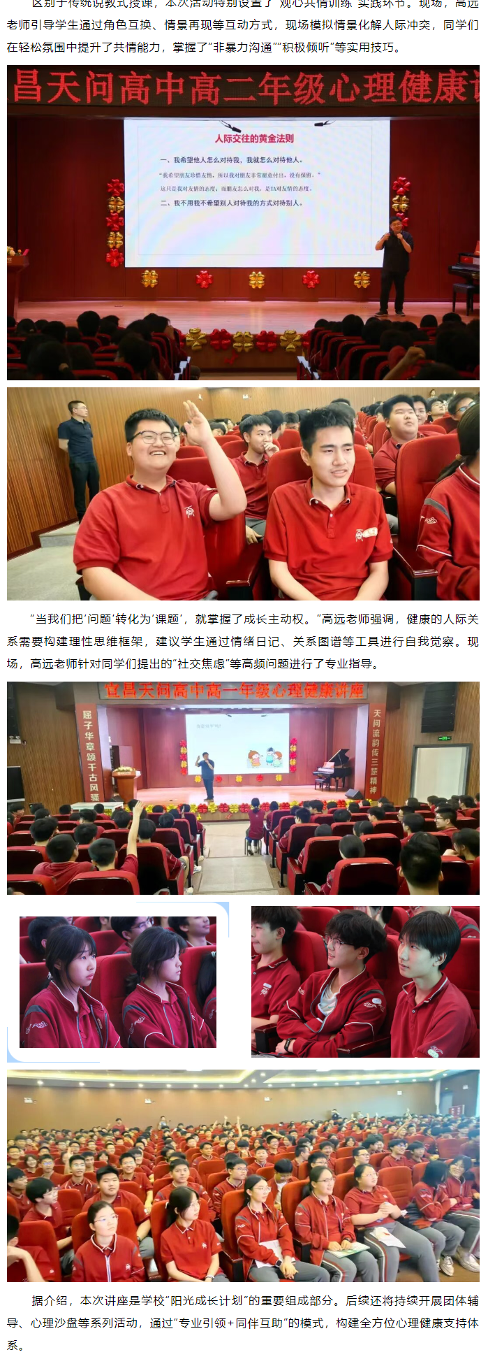 天问高中宜昌校区丨“你的朋友圈你做主” 心理讲座润心赋能