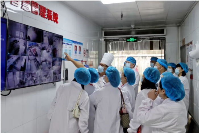 “现在,我们一起走进后厨,看看孩子们每天吃的饭菜是怎么制作的!” 随着食堂负责人郑贵鸿主任的引导,家长委员们开启了 “明厨亮灶” 实地考察之旅。