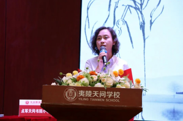 夷陵天问小学校长袁霖淋致辞。她强调,诗词是连接古今的桥梁,大赛是涵养童心的土壤,期待选手们都能自信大方,赛出风采,以诗润心,让文化薪火相传。