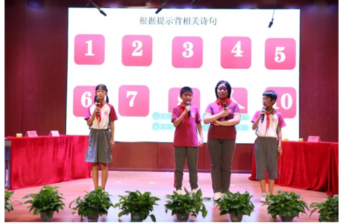 参赛选手们赛场上的胸有成竹,学子们互动环节的自如应对,是往届赛事积淀的厚礼,更是日常浸润的硕果。从2022年屈原文化节诗词吟诵、诗歌创作,到2023年“与诗同行 启美塑魂”传承“诗教”之美,天问的诗词教育早已形成“日常积累— 深度浸润—赛场检验”的完整脉络。清晨的教室里,低年级学子吟诵 “橘生淮南则为橘”童谣,高年级学子品读《离骚》节选,琅琅书声里藏着屈原文化的代际传递;课后打卡群中,老师针对“芷”“兰”等《楚辞》常见意象整理专题,用屈子“扈江离与辟芷兮”的诗句解读草木象征,让15分钟积累成为品格熏陶的课堂。