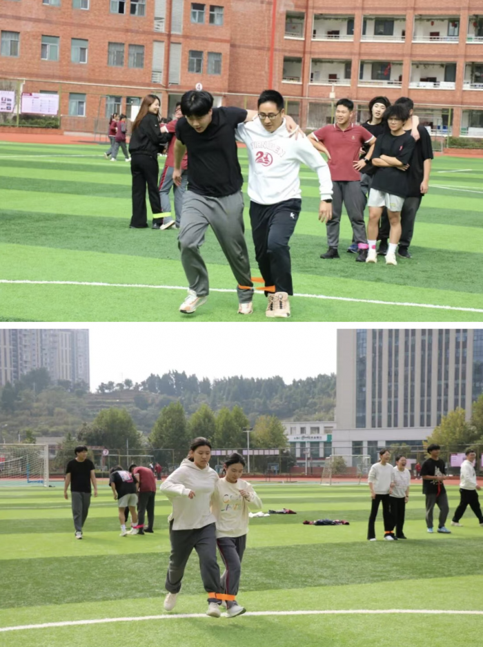 “两人三足” 挑战赛中,搭档们彼此扶持、默契前行,用同步的脚步丈量信任的力量;