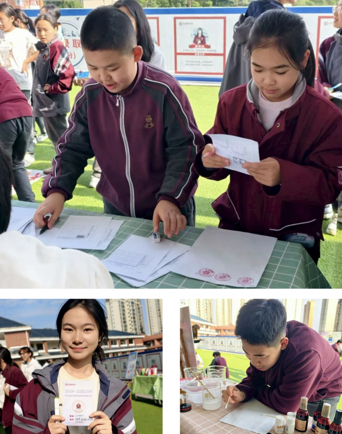 科技节系列活动则为同学们打开了通往奇妙科学世界的大门。活动巧妙融合数学、物理、化学、地理、艺术等多学科知识,转化为互动性强、趣味性足的游戏挑战,让同学们在 “玩中学、学中悟”,沉浸式感受科学的魅力。