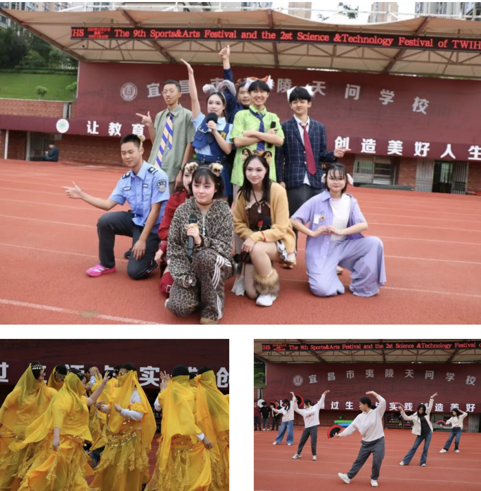 开幕式表演环节精彩纷呈,各年级同学带来了风格各异的节目:《Try Everything》以热血节奏点燃全场,传递敢闯敢试的勇气;302班的印度舞蹈热情洋溢,展现 “魔丸战队” 的活力张力;301班的舞蹈串烧刚柔并济,《新宝岛》的动感与《寄明月》的柔情碰撞出独特的青春火花;102班的歌舞串烧融合多元文化,以《卡拉OK OK》《我只在乎你》唱出青春的肆意与热爱……精彩的表演赢得阵阵喝彩,充分展现了天问国高学生的多元才华与国际视野。