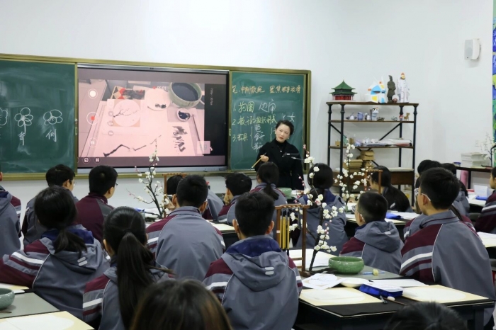美术学科则由天问名师王苗苗带领学生走进《傲雪寒梅》的水墨世界,在笔墨技法中融汇品格教育,彰显了中国传统美学的育人内涵。