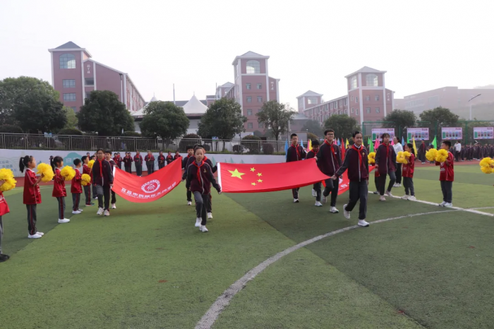 国旗队步伐铿锵,校旗队英姿飒爽,彩旗与鲜花队的孩子们用明艳的色彩点燃全场。随后,各班方阵依次入场,构成了一幅流动的成长画卷:一年级萌娃喊着“我运动,我快乐”的稚嫩口号,眼中闪烁着对世界的好奇;六年级少年则以“挑战自我,超越极限”的宣言,展现了六年时光淬炼出的坚毅与自信。从“快乐”到“超越”,这不仅是口号的更迭,更是西小学子在运动中认识自我、在拼搏中定义成长的生动缩影。