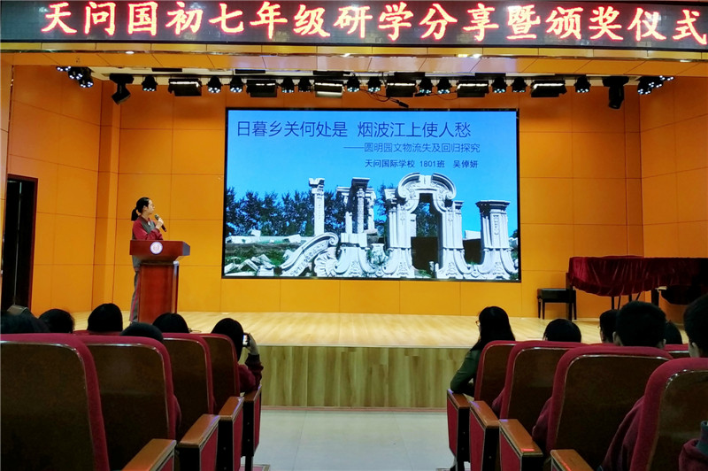 5月9日,天问国际初中七年级以“一路向北 品味京彩”为主题进行了燕赵文化研学分享活动。同学们在精彩的分享中重回紫禁城、圆明园,重温北京之旅,进行了一次厚重的文化洗礼。
