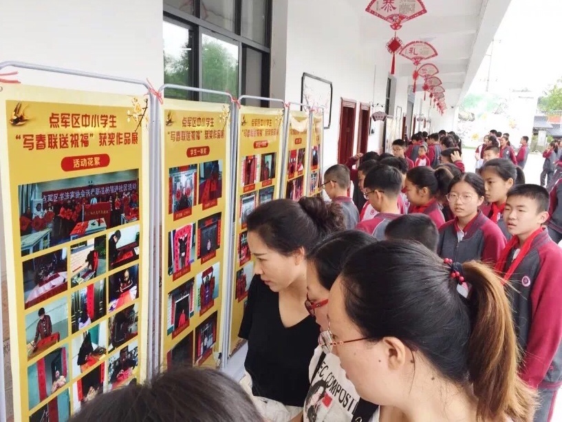 5月22日,宜昌市点军区书法专家组一行到天问书院小学进行了全区中小学生“写春联送祝福”获奖作品巡回展活动,并给师生颁发了获奖证书,点军区书法家协会代先洲主席为全体学生带来了《走进汉字王国》的书法讲座,将此次活动推向了高潮。