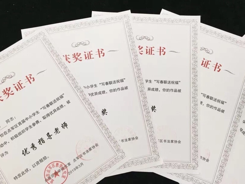 继承传统文化,弘扬书法艺术,天问书院小学一直在坚持。此次活动,天问书院学子有五人获得了奖项,其中一等奖一名,二等奖一名,三等奖三名。肖伟老师获得点军区教研室、点军区书法家协会颁发的“优秀指导老师”荣誉称号。