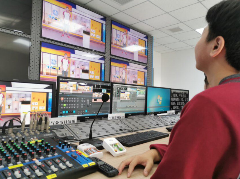 第三站在影视中心,同学们亲身体验了天气预报节目制作流程,还体验了一把“气象小主播”。通过体验,孩子们发现,气象主播并不是在实景地图前播报,而是在一个“蓝幕”当中工作。然后,通过“抠绿”的技术后期合成一档完整的气象节目。这是孩子们最喜欢的一个环节,不管是小主播还是观众都乐在其中,连随行的外教Chris在一旁也看得心动不已、跃跃欲试,最后如愿以偿地用英语给孩子们进行了气象播报!孩子们也了解到,专业、顺利流畅的气象播报需要经过主播反复的上镜练习与对地理知识、气象知识的准确拿捏,更为重要的是气象节目必须精确到一分钟整的节目时长,不可多一秒或少一秒,主播对于时间的概念必须十分敏锐。看来主播在人前非常风光,背后也是需要付出非常多的心血和努力。