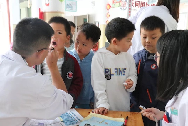 关注幼儿健康,是每个家庭和幼儿园的头等大事,为更好地了解幼儿的生长发育状况,保障幼儿健康成长,2019年5月9日至10日,天问国际幼儿园开展了为期两天的幼儿体检活动,夷陵区妇幼保健中心的医生们到园为孩子们进行体检。此次体检项目主要有身高、体重、血常规、龋齿、听力、视力等,基本涵盖幼儿生长发育的重要指标。对孩子及早进行健康干预和疾病矫治!