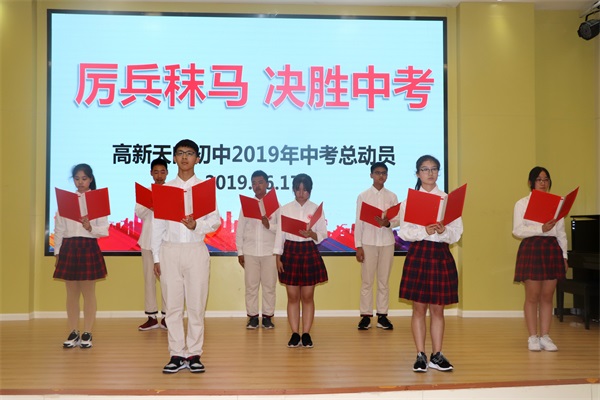 之后,高新天问初中执行校长王明章发布了2019年中考动员令。