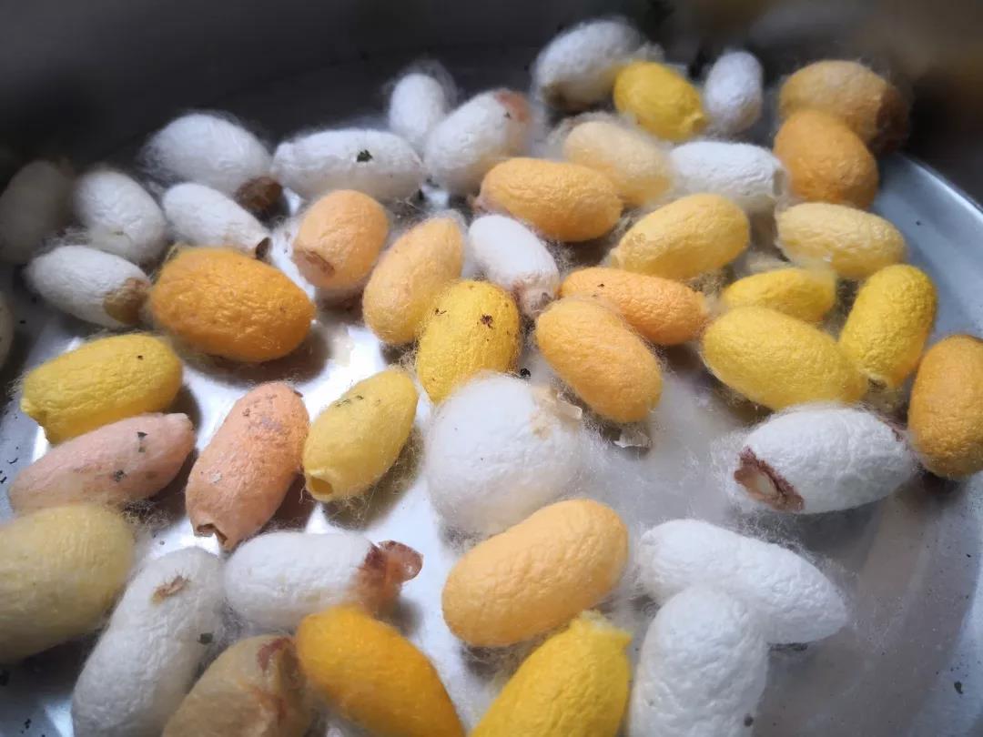 蚕宝宝在我们的精心照顾下结茧了,即将开启新一段生命的循环。