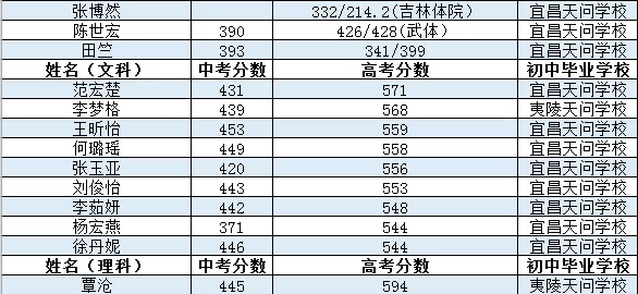 宜昌天问高中2019届高三应届生308人参考,一本上线104人(含艺体特长生)。其中纯应届生纯文纯理上一本线54人,理科最高分594分,文科最高分583分,本科上线276人,本科上线率为89.6%。