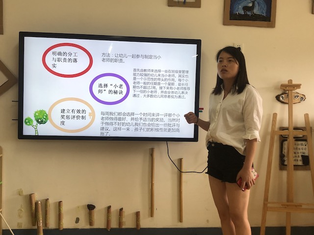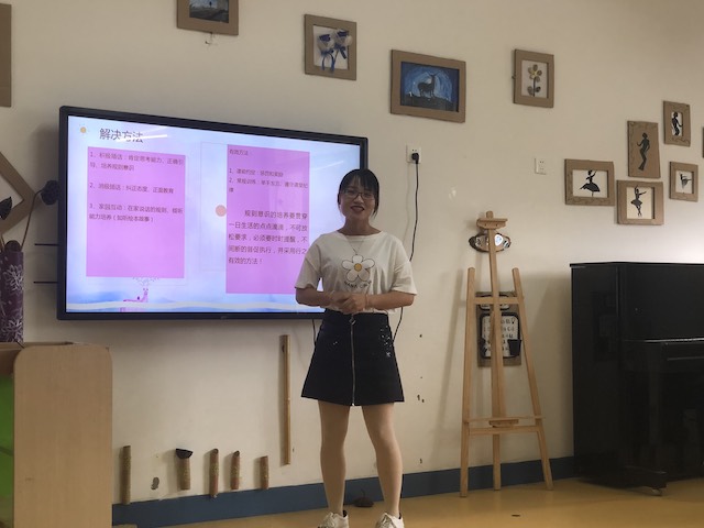 天问国际幼儿园大班学期末分享总结会于2019年6月30日下午3:30如期举行。本次活动大班所有的老师都参会。会议以课程建设、户外游戏、生活习惯、班级特色、以及个人成长等方面来进行个人分享。会议中,老师们认真聆听,积极思考,现场进行了问答环节和听后心得分享。大家也将教育教学中遇到的问题和难题提出来,大家共同解惑,气氛十分热烈。接下来我们一起来看看大班老师们的精彩发言吧!