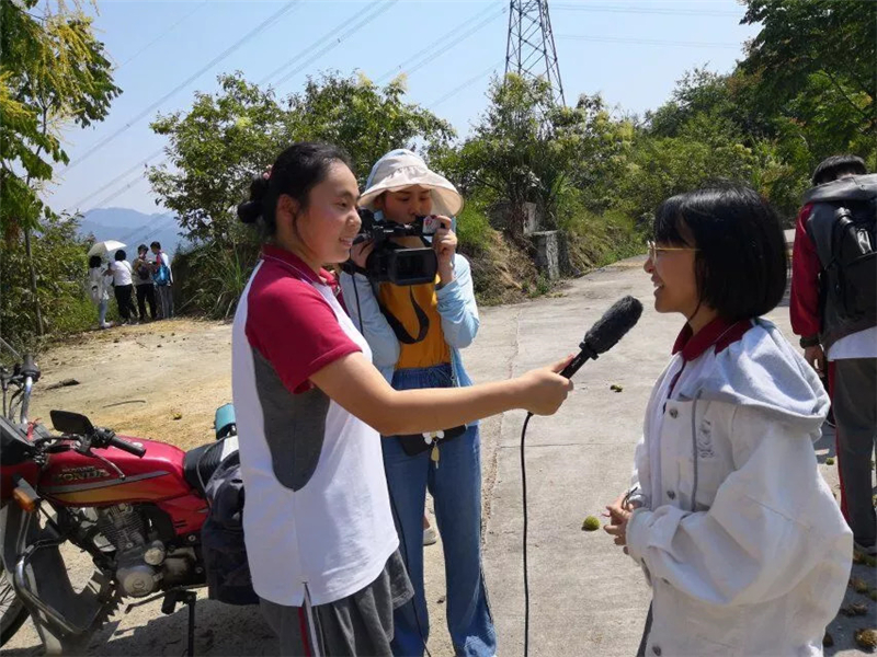 才女史邹旭干脆接过记者的话筒,也体验了一把采访的瘾,采访起同窗好友黄金津有模有样:“乐天溪的山水风光哪一点最打动你?”“此次出游你对板栗又多了哪些认识?”等等,令一旁的记者姐姐频频点赞。