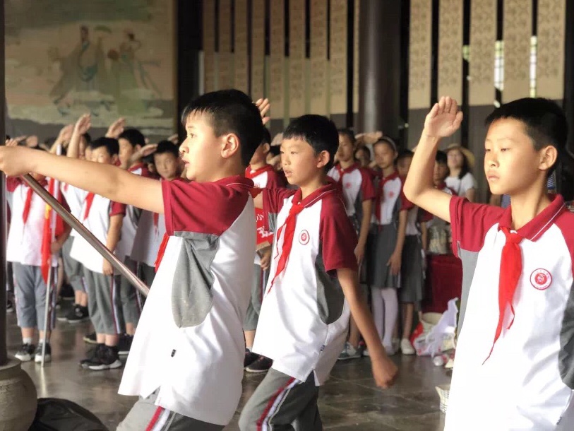 5月31日,天问书院小学全体师生前往屈原祠景区开展了“慕先贤,迎端午,庆六一”的研学之旅。各班学子吟诵屈原名篇,亲手包粽子,制作艾草香包,以此纪念先贤。随后,迎来了一年级入队仪式,鲜艳的“红领巾”表达了对祖国的爱戴和敬仰。