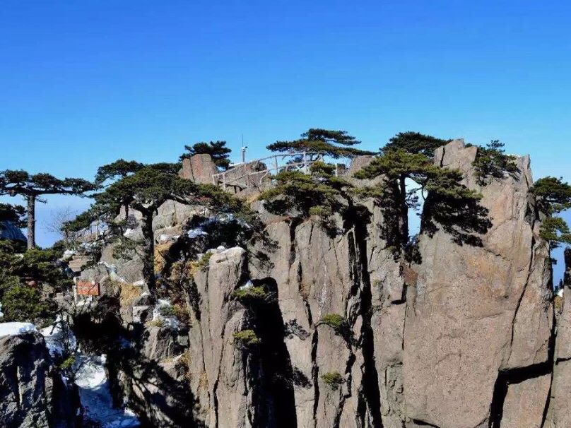黄山的奇在那古松身上。黄山的松树有的像展翅欲飞的凤凰,雍容端庄,仪态万方;有的又像是腾云驾雾的龙,生龙活虎,盘曲虬劲;还有的像腾跃的麒麟,黄山的松盘根于危岩峭壁之中,挺立于峰崖绝壁之上。有的黄山松仿佛生长于九天之上,还有的黄山松破土而生,让人啧啧称奇。其中最让人惊奇的是“迎客松”,它在向你热情的招手,仿佛是好客的主人,在迎接着你的到来。难怪古人说:“黄山之美始于松”。