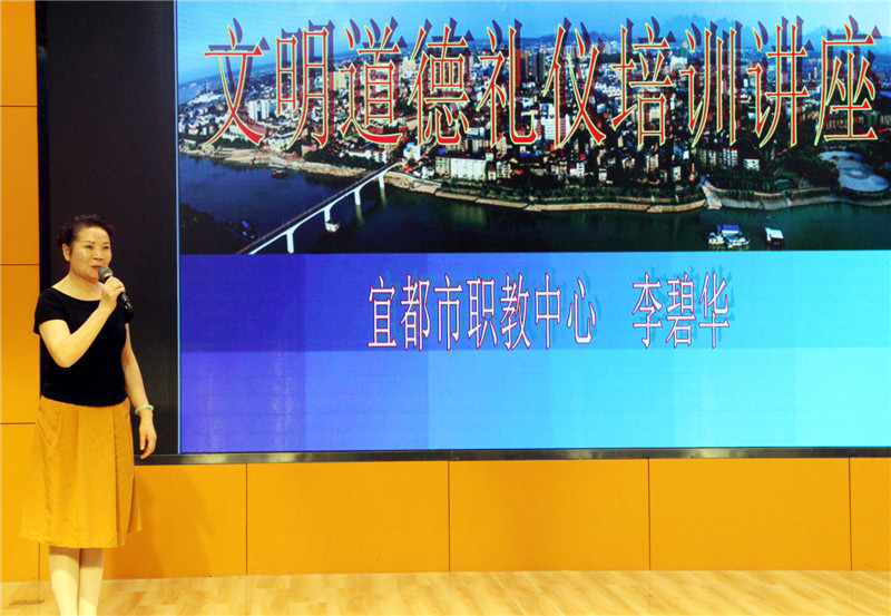 宜都市职教中心李碧华老师为老师们进行礼仪和职业道德培训的同时,还为老师们带来了敬业必备要素、团队精神、注重细节、态度决定一切、责任意识、大局意识、自身修养、执行力、好习惯等工作理念,以及满满的心灵鸡汤,如“不懂得自我管理,如何管理他人” “没有信念,就没有激情,就没有智慧”“和蔼可亲的态度是永远的介绍信”等,每一句话都将成为老师们今后的工作指南。