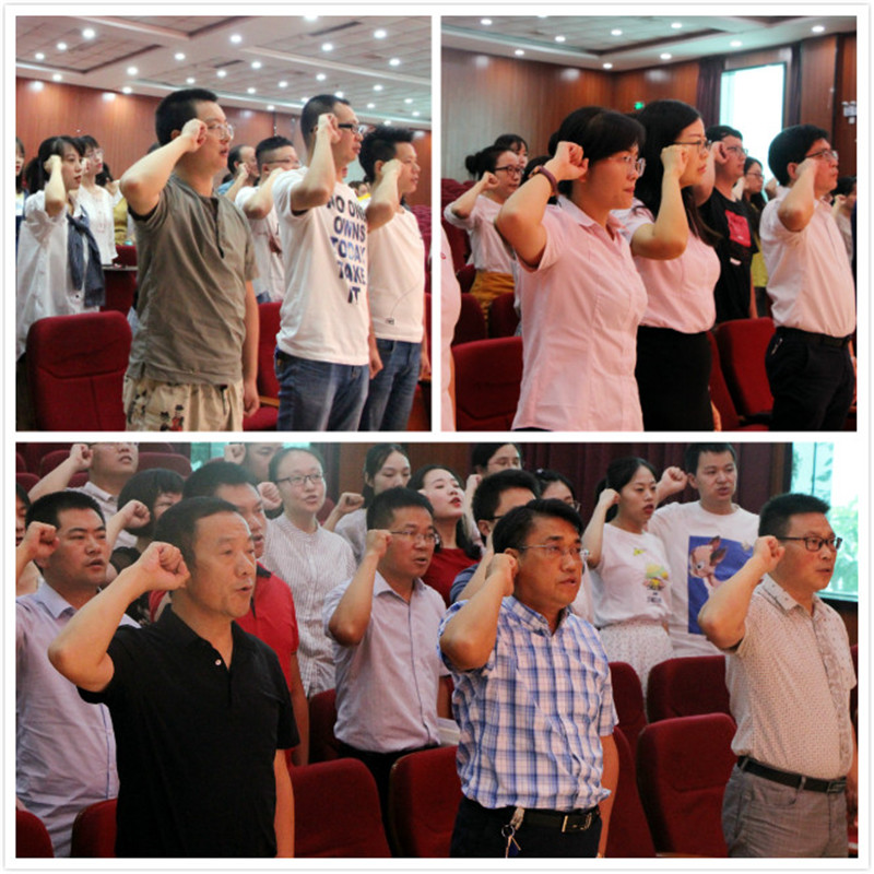培训会上,工会曹光琼主席向全体教师发起了加强师德师风建设倡议书,希望老师们树立大局意识,坚守教育净土,规范教师行为,塑造为人师表的良好形象。曹主席还带领全体教师庄严宣誓:自觉遵守学校“三大禁令”,遵守社会公德和职业道德,为教育事业奋斗终身。