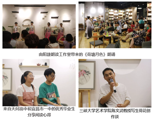 7月19日,主办方邀请全体与会人员参观了位于宜昌市图书城内的伴书房 。这里正在举行一周一次的公益活动——朱自清《荷塘月色》散文阅读心得分享会。