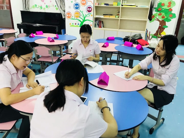 晚上八点了,忙完一天入学课程的班主任还在教室做总结反思。