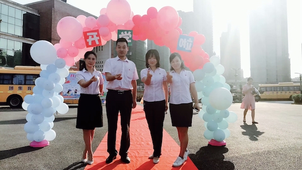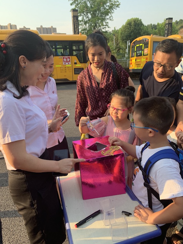 校长妈妈和杨军主任早早的来到气球拱门这里迎接我们的到来啦!他们笑容洋溢,站在学校门口,第一个为新生小朋友送上祝福!