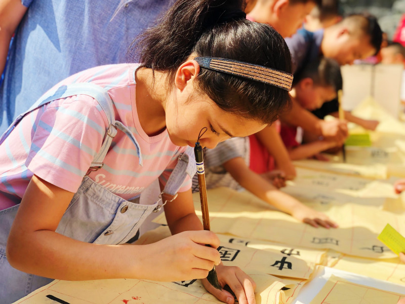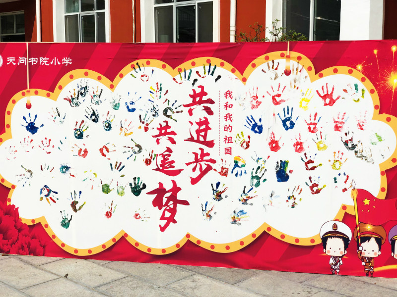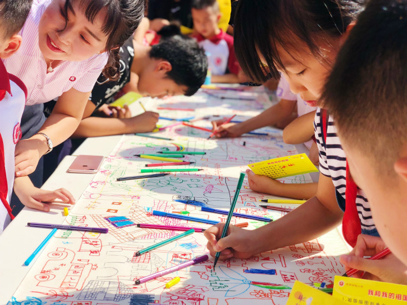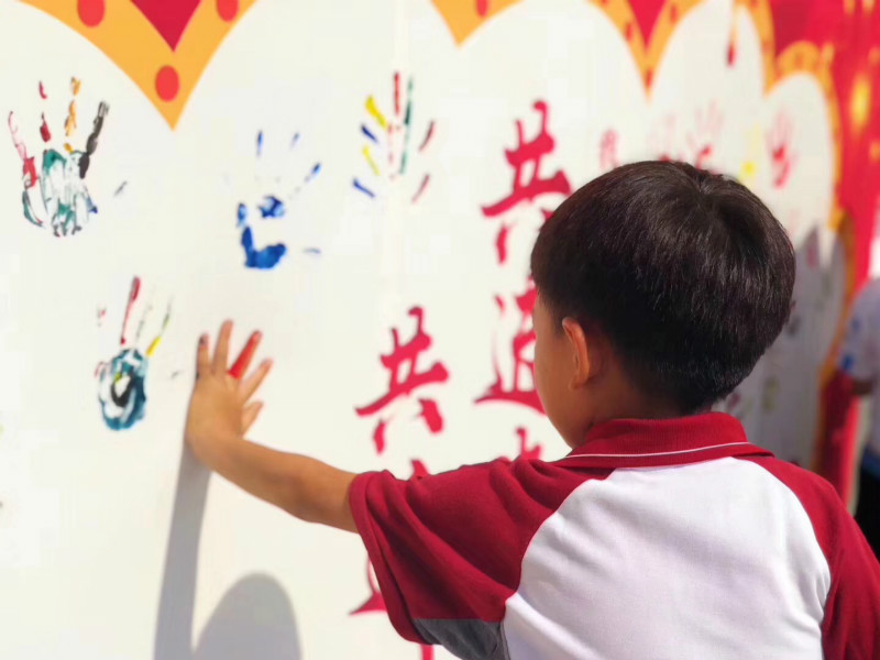 报名结束后,“祖国版图知多少”“中华民族是一家”“手绘祖国好河山”等7项体验课程,唤起了学生和家长对祖国文化和精神财富的兴趣。大家在这里聊省份、谈民族、唱红歌、写中国、画河山、说佳节,更深入地感知祖国,了解祖国;在“我和我的祖国”的签名墙上郑重地按下自己的手印,写上自己的名字,表达了与祖国共进步、共追梦的愿望。