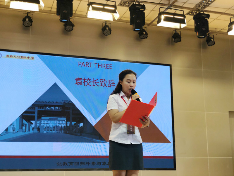 书院小学袁霖淋校长向学子们分享了“敏而好学,不耻下问” “读万卷书,行万里路”两句名言,希望学子们意识到阅读的可贵,每天都能带着问题走进课堂,带着探索的精神亲近书本,从书院上学的第一天起,做一个热爱阅读的人。