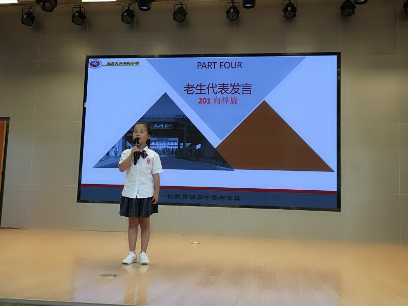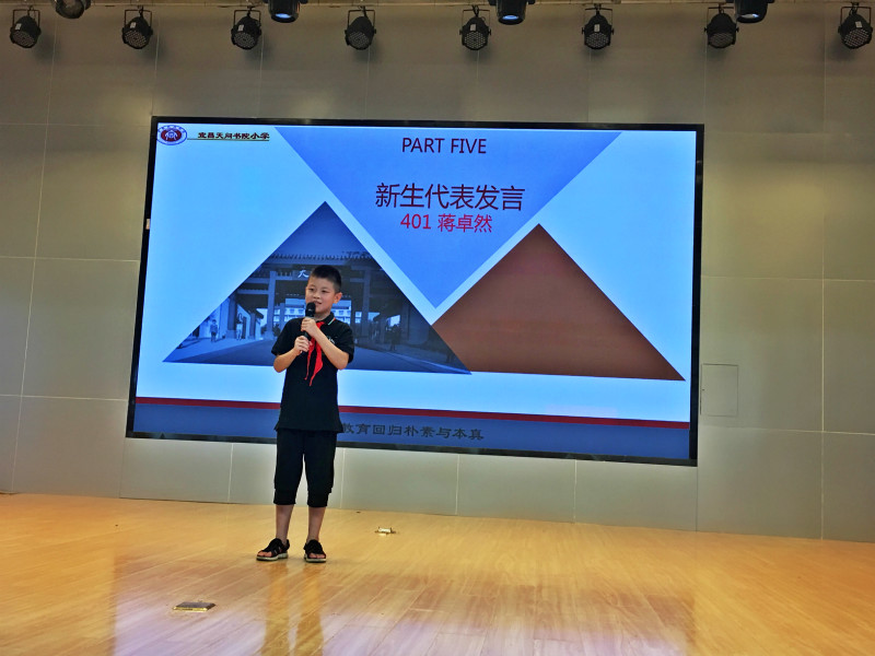 201班向梓璇代表老生送上祝福,401班蒋卓然代表新生许下承诺,601班邹余灵奥的爸爸一曲激昂的《国家》将会场氛围推向高潮。