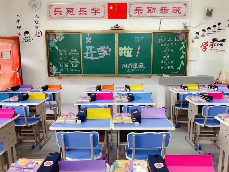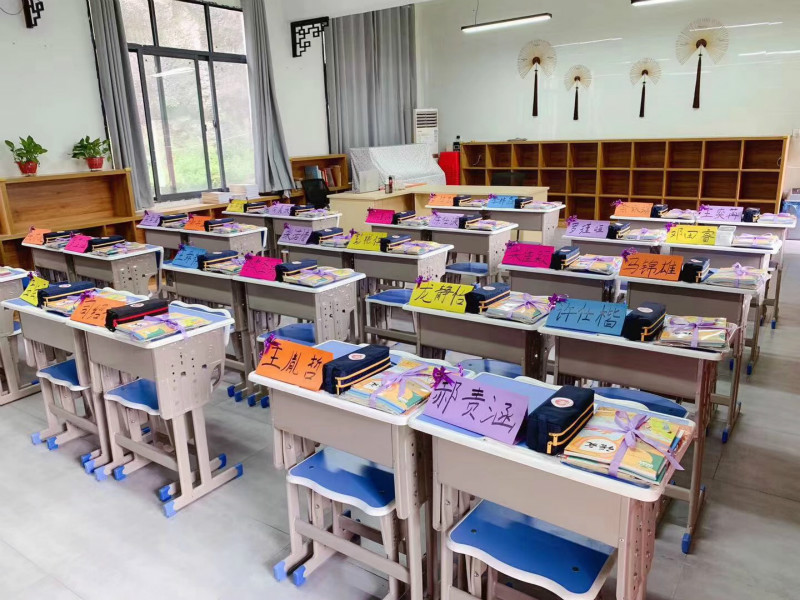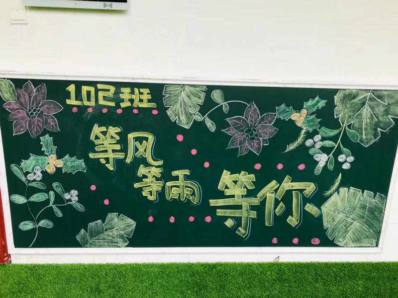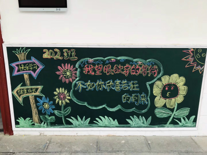 “我望眼欲穿的等待,不如你欣喜若狂的到来”“等风等雨等你”……教室门口的黑板上写满了深情的土味情话。教室里预备好的书本、书包、笔袋等文具纤尘不染、顺序排列,古扇、花盘、字画各具中国特色。轻松活泼又不失文化底蕴的校园氛围,引得学子们在教室门口留影、嬉闹,欢欣雀跃。