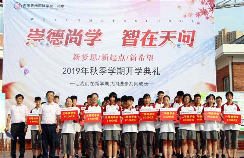 9月2日,夷陵天问国际初中2019年秋季学期“崇德尚学 智在天问”开学典礼盛大举行。