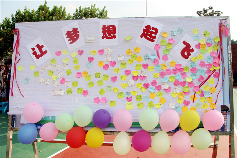 开学典礼上,全体师生热烈欢迎七年级的新同学将新学期的梦想贴上梦想墙,并跨过红地毯,开启了新的学习之旅。
