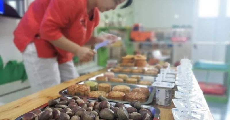 1、老师为大家准备了丰富的中秋餐点