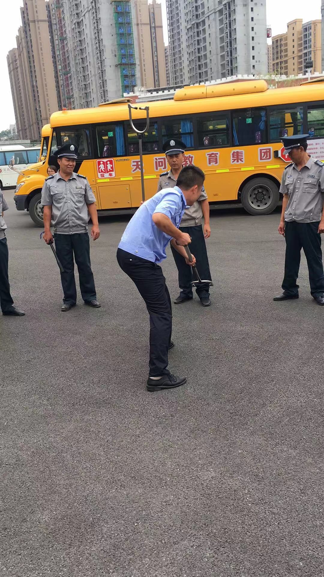 天问学校安全保卫部陈主任参加了本次培训。陈主任从充分认识校园保安培训的必要性、主动提高安保综合素质等方面, 明确了校园保安“护校安全”的责任之重。并表示要进一步提升校园保安圆的服务意识,树立良好形象。不断加强安保培训,经常开展专业体能、技能锻炼,不断提高工作责任心和安保能力。 此次培训分为知识培训和现场演练两部分 专业化培训,提升业务水平。保安公司专业培训教官分别从校园保安职责和职业道德、相关法律法规、保安管理制度等和突发事件处置、校园电子监控、消防与治安工作要领等方面对保安员进行培训。 实践性演练,增强应变能力。 结合校园安保工作的实际需要,培训教官围绕防暴盾牌、防暴钢叉等防暴器械的使用方法和如何有效地组合运用进行了讲解及示范,并组织参训人员对防暴器械的使用进行练习体会,掌握技巧,确保参训人员对各种装备熟练运用。 培训增技能,护航校园责任大 此次培训严格有序、注重实效,有效提升了参训保安员的基本技能和应对突发事件的处置能力,增强了保安队伍的反恐防暴意识,为天问学校专职保安更好地服务学校师生、确保师生安全奠定了坚实的基础,为“平安校园”创建提供了有力保障。