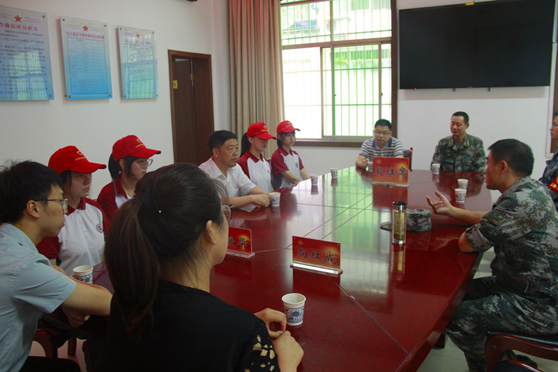 在夷陵区人武部部长郑爱华上校的组织下,全体师生与驻地官兵进行了亲切的交流。在郑部长的讲解下,我们了解到部队的光辉历程和英模典型的事例,在座的师生深受感动。