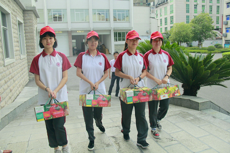 王少斌校长代表天问高中全体师生向武装部驻地官兵致以节日的问候和诚挚的祝福;学生代表也向部队赠送水果等慰问品。