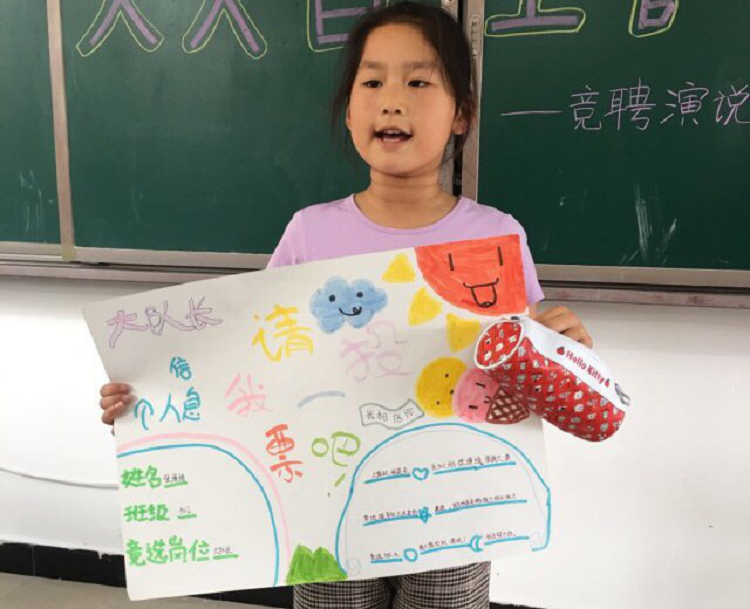 学期初由少先队大队部拟定岗位设置表,于开学第一周分发给每位孩子。学生将申请表带回家与父母商议后确定自己申报的部门及岗位,利用周末的时间在家制作宣传海报,为自己的竞聘演说添彩。