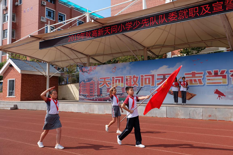 9月24日,队歌响起,队旗飘飘。高校天问小学全体师生齐聚学校的操场,一起见证新一届少先队队委就职。所有的少先队队委们不仅接受了一份荣誉,同时也接受了一份责任,接受了一份老师、同学的信任。