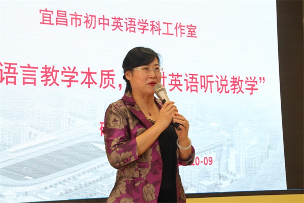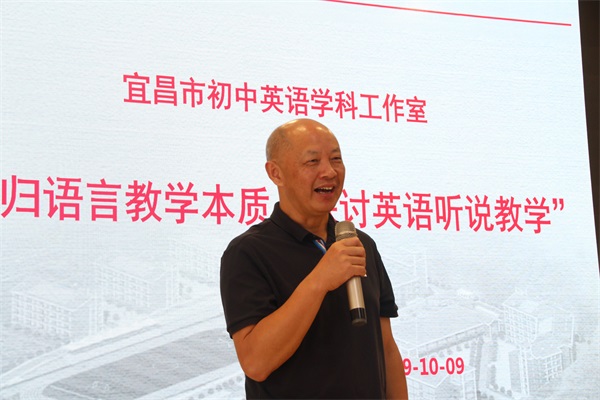 本网讯(通讯员 李春妮 裴燕妮)10月9日,宜昌市初中英语学科工作室“回归语言教学本质 探讨英语听说教学”研讨会在高新天问初中顺利召开。会议围绕宜昌市中考英语改革新方案中的听力口语考试展开教学研讨。宜昌市英语教研员黄海燕、高新区英语教研员谭志坚、特邀专家徐启富、市初中英语学科工作室全体专家组成员、市各初中英语教师代表参加了本次会议。