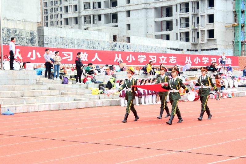 伴随着激昂的音乐声,天问国际小学学生组成的国旗队和鲜花方阵进入会场,拉开了本次展演的序幕。各代表队依次亮相入场,他们精神抖擞,步伐整齐。